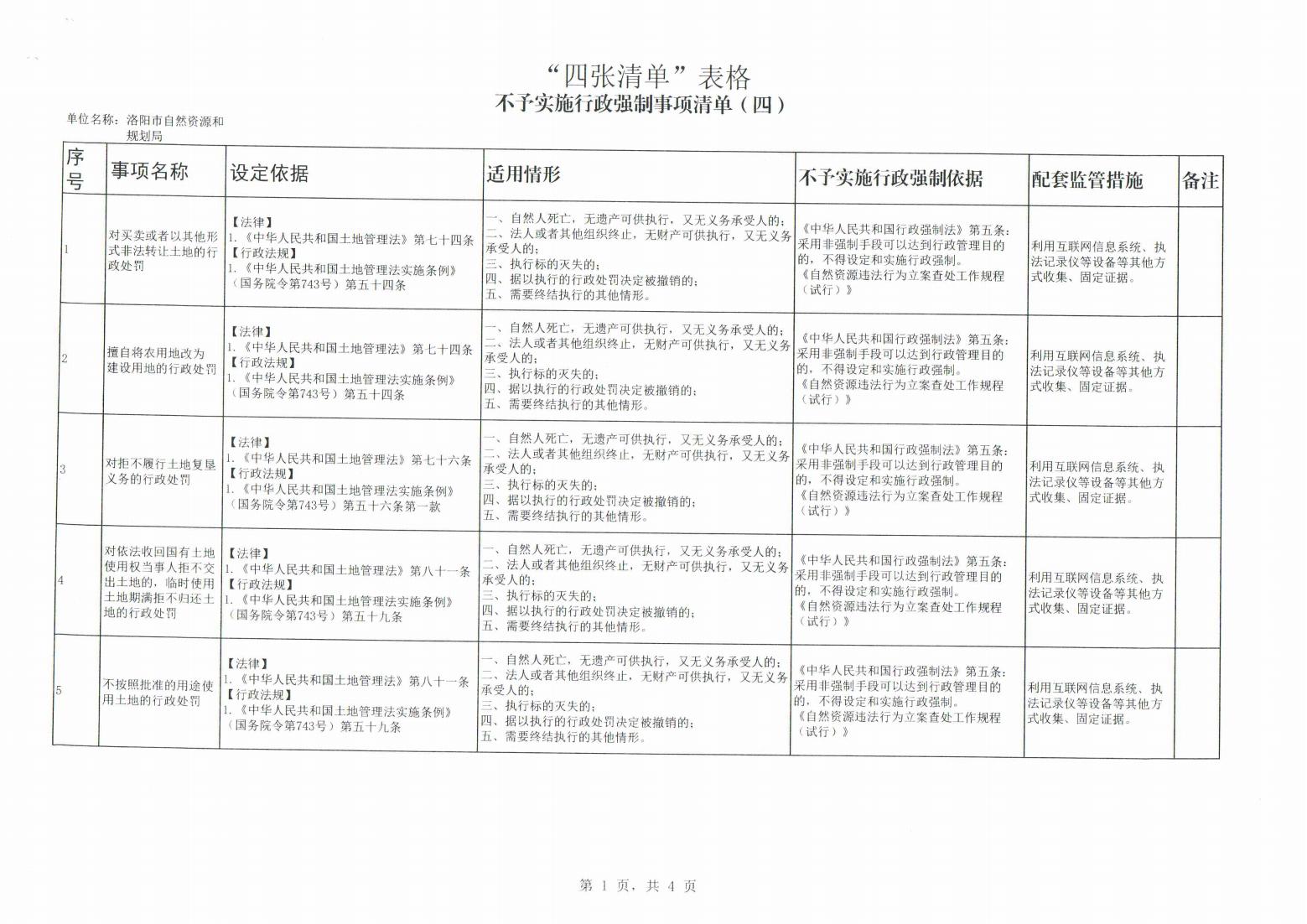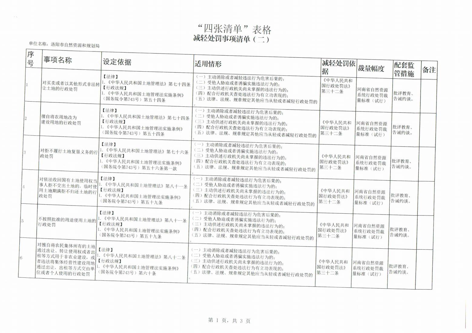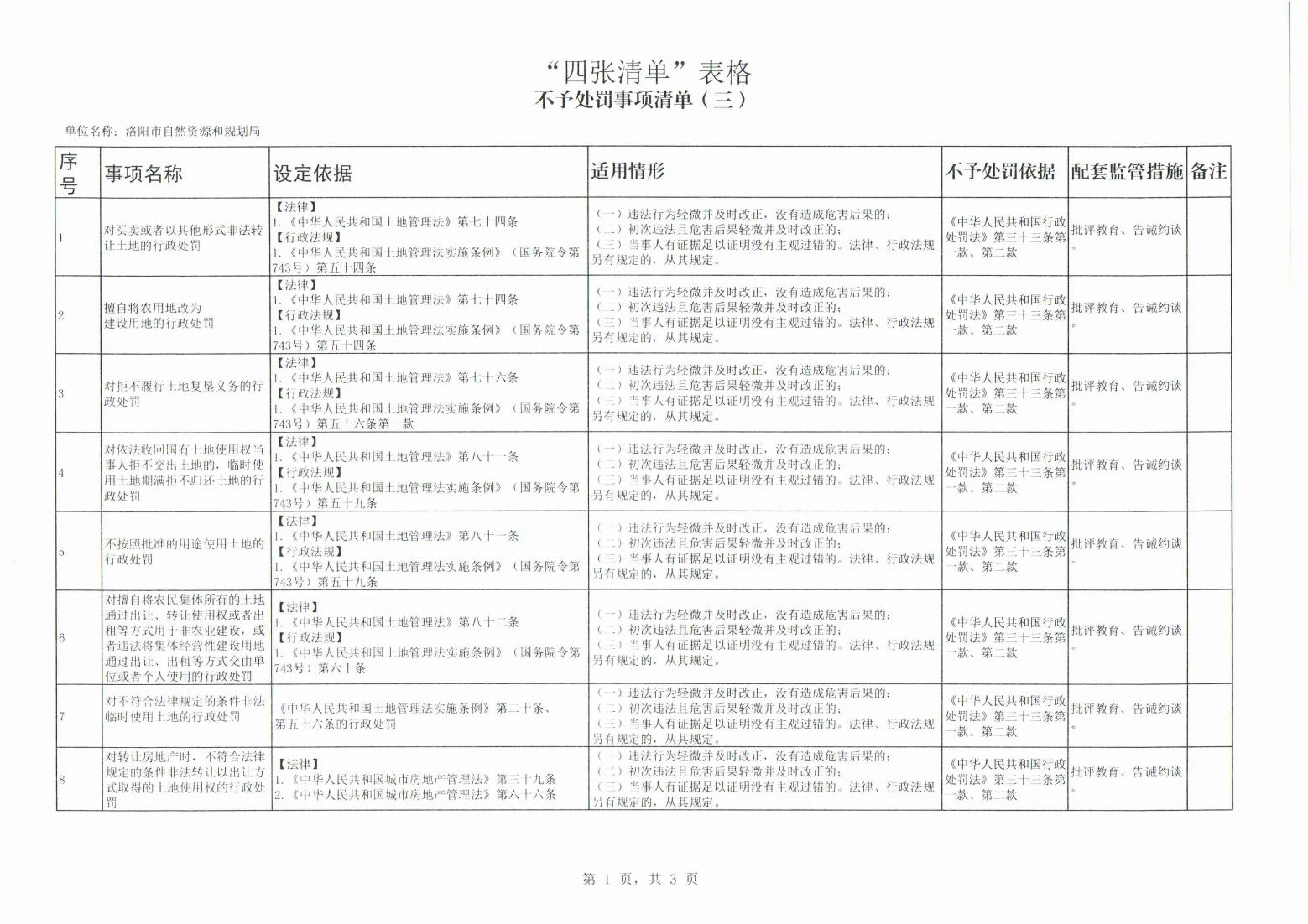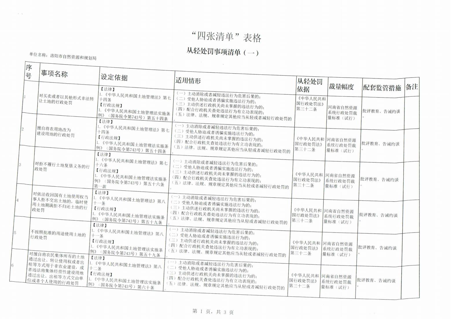 洛阳市自然资源和规划局“四张清单”公示